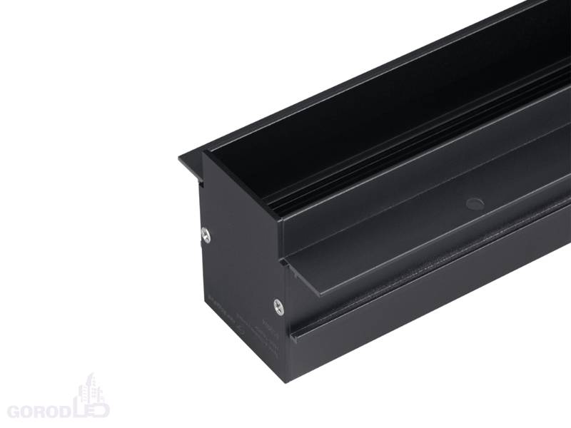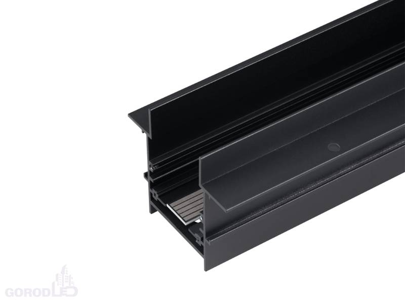 Встраиваемый магнитный трек с фланцем для монтажа в гипсокартонный потолок, длина 3000 мм. DC24V. Материал алюминий, цвет белый или черный. Две заглушки в комплекте. 5 токопроводящих дорожек (возможность управления по DALI). Размер ДxШxВ: 3000x75x60 мм. Размер (с учетом заглушек и фланцев) ДxШxВ: 3040x75x60 мм. DC24V.