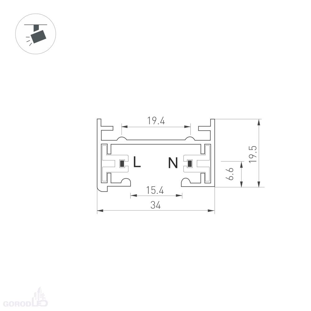 Белый глянцевый трек (шина) LGD-2TR-TRACK-2000-WH-M (C) для однофазных трековых светильников на 2 провода.