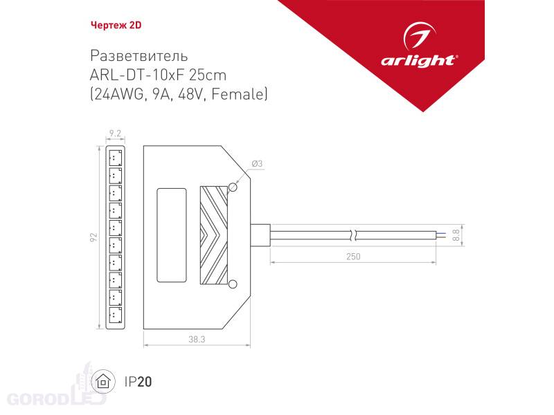 Разветвитель ARL-DT-10xF 25cm (24AWG, 9A, 48V, Female)