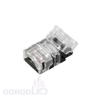 Одиночный коннектор для соединения 2-х отрезков герметичных (IP54/IP65) светодиодных одноцветных лент SE (заливка силиконом сверху) шириной 8 мм. Материал - пластик.