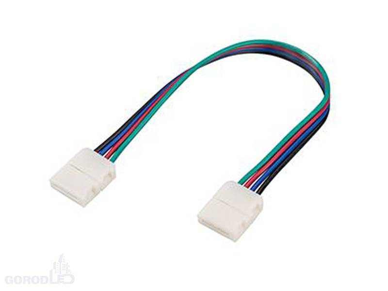 Двойной коннектор с проводом 15см для соединения 2-х отрезков открытых светодиодных лент RGB шириной 10мм. Материал - пластик. Максимальный допустимый ток 3А, каналы 3ch-RGB, напряжение до 50 В. Цена за 1шт.