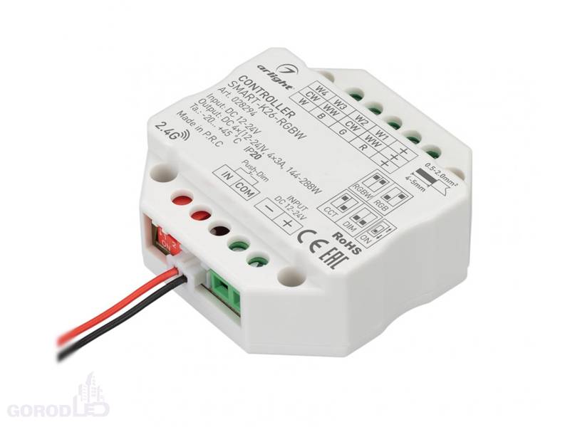 - Контроллер SMART-K26-RGBW (12-24V, 4x3A, 2.4G)