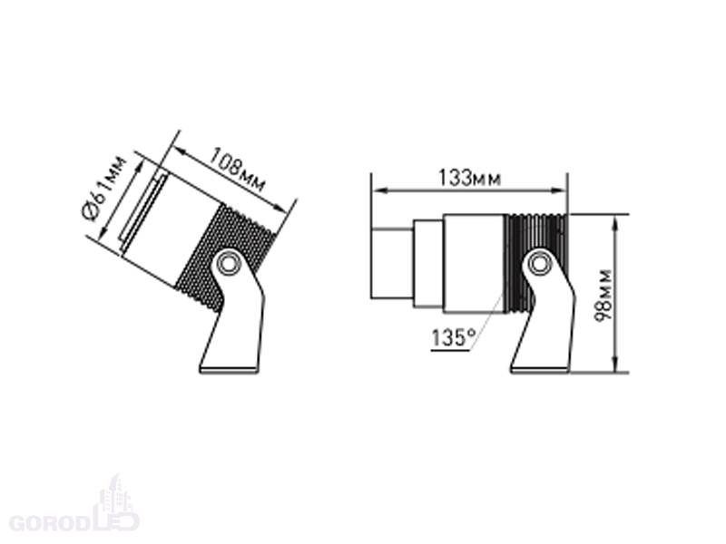 Уличный светодиодный прожектор, мощность 12 Вт, регулируемый угол освещения 10-60°.