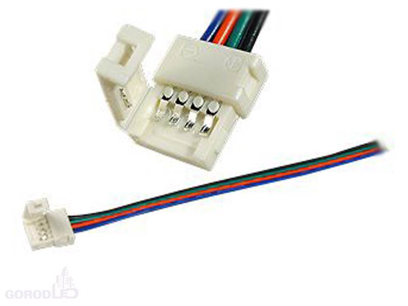 Разъем с фиксатором для подключения питания к светодиодным RGB лентам шириной 10мм. Одна сторона - 4-х контактный разъем, другая - провод 15см. Максимальный допустимый ток 4А. Каналы 3ch-RGB.Не подавайте на разъем ток выше допустимого!