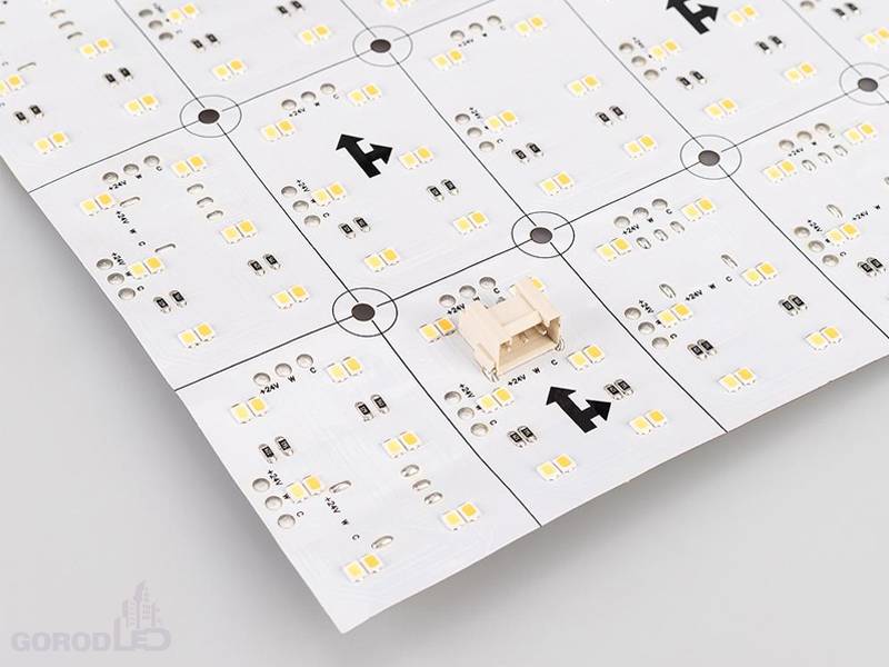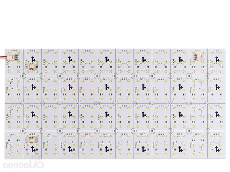 2-х канальный светодиодный лист с изменяемой цв.температурой. Два цвета БЕЛЫЙ 6000K + ТЁПЛЫЙ 2700K, светодиоды smd 2835, 12шт/сегмент (576 шт/лист). Питание 24V, мощность: лист - 15Вт, мин.1 сегмент-0,31 Вт, цветопередача CRI>90. Скотч 3М. Подача питания в любой точке "+" и "-". Размер 480х240мм, мин.сегмент 40х60мм.
