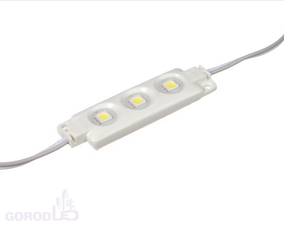 Линейный светодиодный модуль LP PL 5050-3 — это 3 диода SMD 5050 и резисторы с рабочим напряжением 12V, которые находятся в пластиковом корпусе. Яркость 1 диода составляет 54Lm, а всей упаковки — 3240Lm, что дает вам очень яркое и насыщенное свечение. Корпус залит двухкомпонентным компаундом. Поэтому вы можете использовать светодиодный модуль led в условиях повышенной влажности и резкого перепада внешней температуры от -30 до +50 градусов.