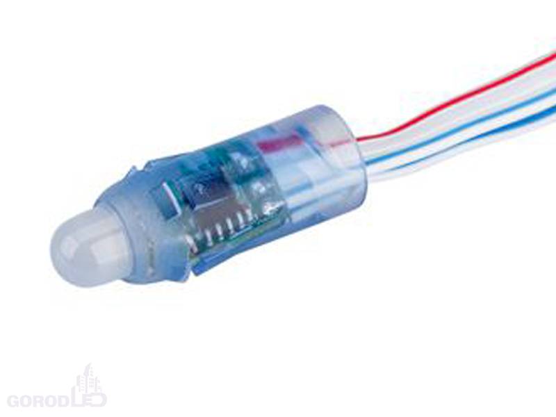 Герметичный (IP67) управляемый RGB-Модуль (1 светодиод RGB 8 мм, встроенный чип 1903, 256 градаций/канал), управл-ся контроллерами HX-805 и HX-801SE, угол 180°. На проводе 50 шт, между модулями 80 мм. Питание 5В, мощность 0.3Вт, рабочая температура -35+50 C. Диаметр модуля 12 мм, высота 33 мм. Гарантия 1 год.