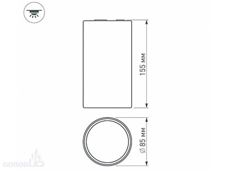 Размер: Ø85 x 155 мм, встроенный драйвер PRI:220-240VAC, SEC:DC 500mA 23-36V 15 Вт.