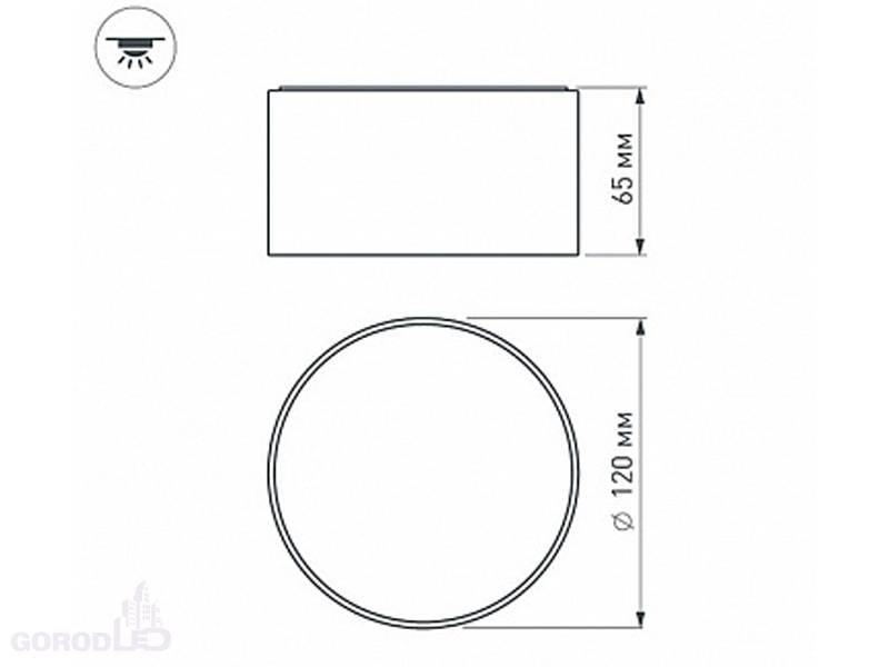 Размер Ф120 x 65 мм. Питание AC110-240V, 12 Вт, драйвер встроенный.