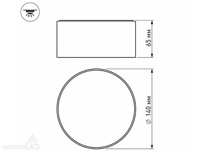 Размер Ф140 x 65 мм. Питание AC110-240V, 18 Вт, драйвер встроенный.
