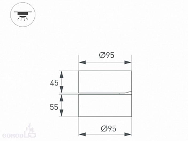 Размер Ф95 x 67 мм. Питание AC220-240V, 16 Вт, драйвер встроенный (400mA, 30-42V).