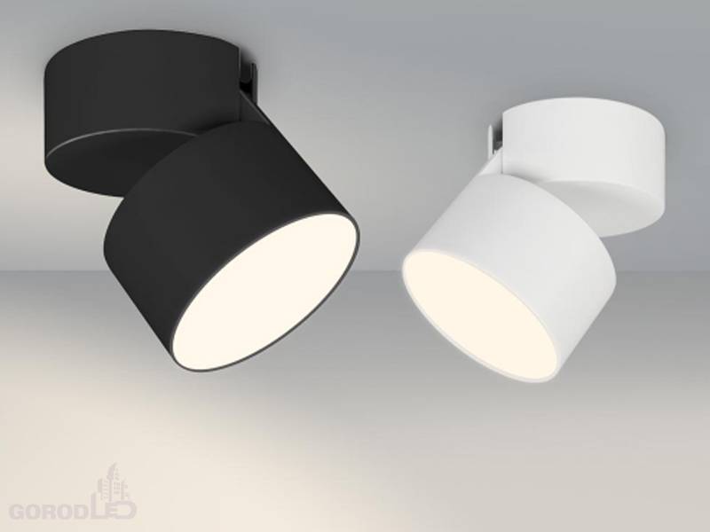 Накладной откидной светильник 16 Вт, черный и белый круглый корпус.