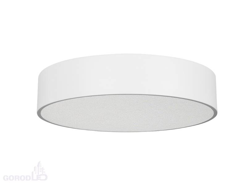 Накладной интерьерный светильник. Мощность 35 Вт, св. поток 2840 лм, 80 лм/Вт, дневной 4000 K, теплый 3000 К, CRI>80, угол 100°, напряжение питания 230 В. Белый или черный круглый корпус из алюминия, степень защиты IP20. Призматический акриловый рассеиватель. Размер: диаметр 500 мм, высота 100 мм. Монтаж накладной. Драйвер 30-42 В, 950 мА, пульсация <2%.