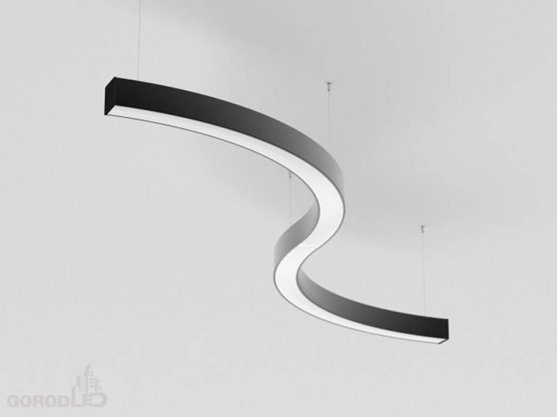 Светильник S-образный из профиля SL-ARC-3535-D800-A90 BLACK, свечение вниз.