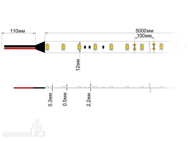 Данная светодиодная лента не имеет влагозащитного покрытия, поэтому предназначена для установки в сухих помещениях или защищенных от попадания влаги устройствах. Светодиодная лента работает от сети постоянного напряжения 24 V, поэтому для подключения к 220 V используйтеся блок питания с запасом мощности 25%. Для подключения 5 метров ленты IP22 5630/60 LED потребуется блок питания мощностью 180 W и выходным напряжением 24 V.