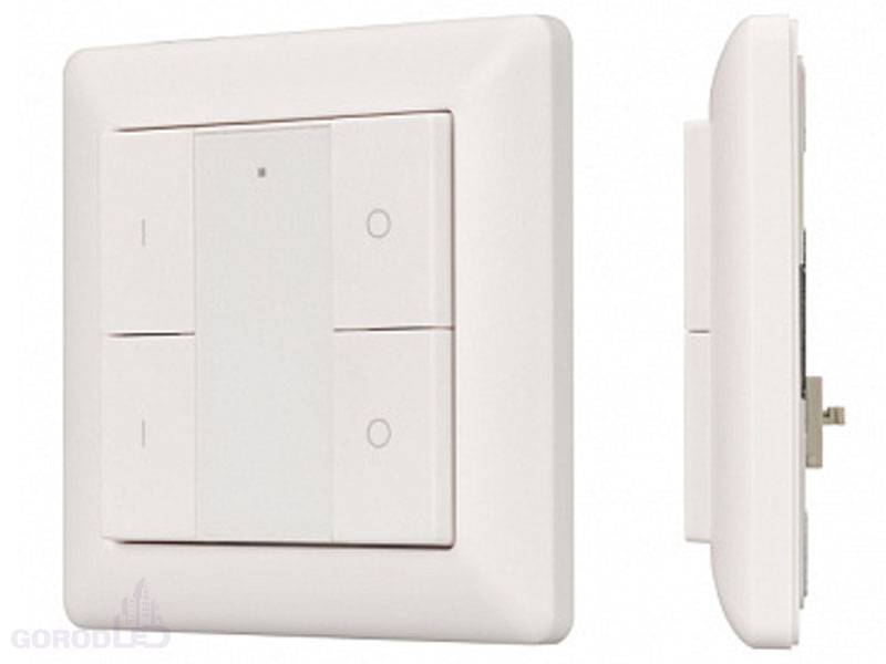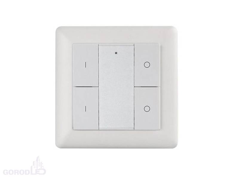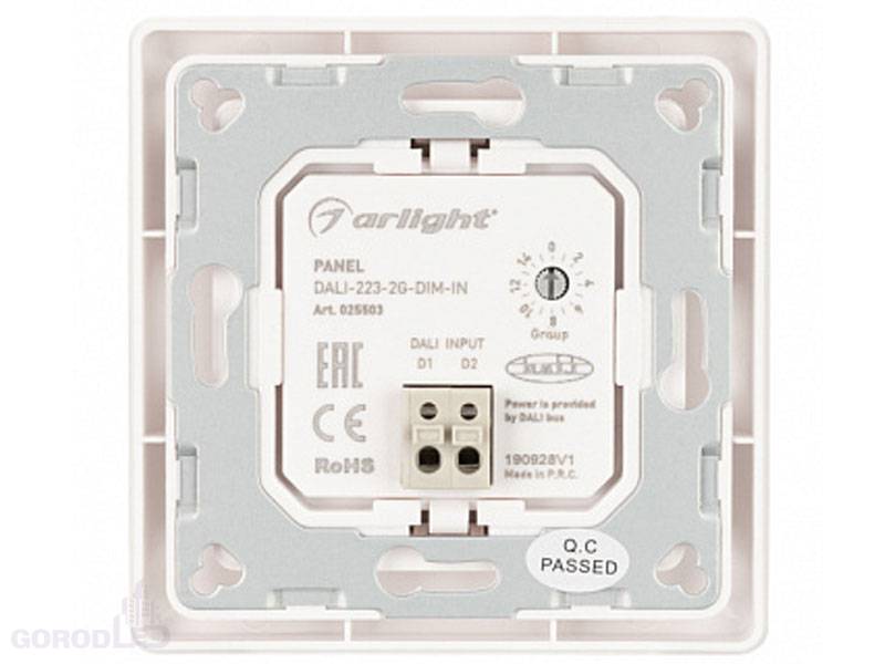 Встраиваемая кнопочная белая пластиковая панель для работы по протоколу DALI. Управление 2-мя группами. Установка номера первой группы выполняется переключателями на корпусе, функции каждой группы (ВКЛ / ВЫКЛ / ДИММИРОВАНИЕ). Питание от шины DALI (4 мА).