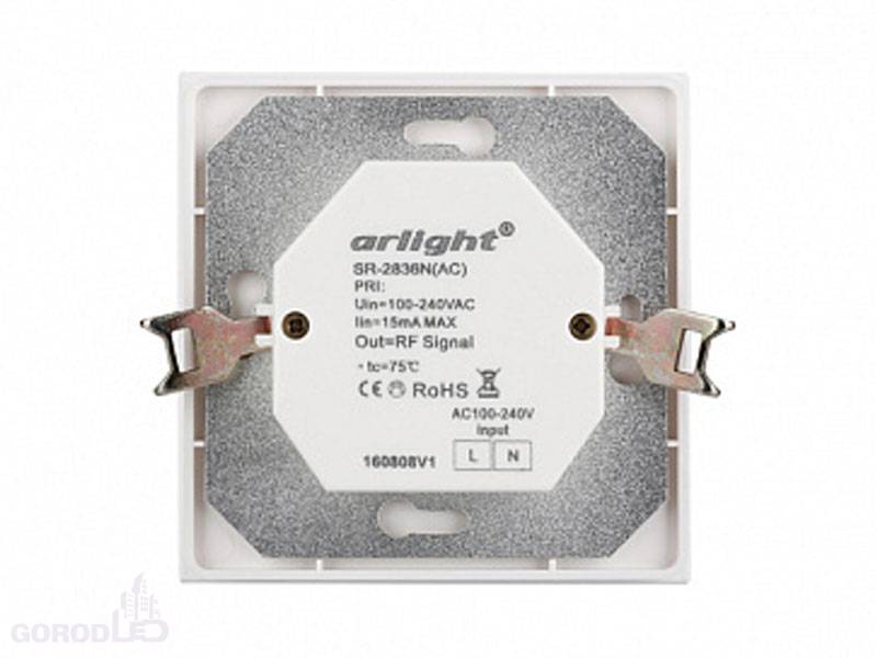Встраиваемая стеклянная поворотная панель для светодиодных одноцветных лент. Управление по радиоканалу. Питание - 100-240V AC. Работает вместе с контроллером SR-1009x.