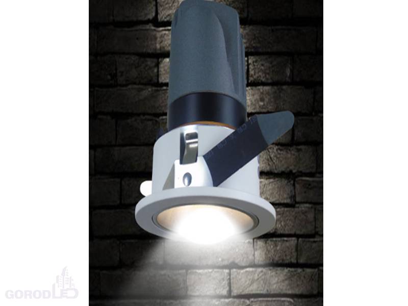 Встраиваемый круглый светильник, угол 35 градусов / 12Вт / Световой поток: 800лм, CRI>80. Белая лицевая панель. IP44. Питание AC85-265V, 12Вт, драйвер в комплекте. Размеры DxH: 90х105мм, отверстие для установки 73мм. Предназначен для основного, локального и декоративного освещения в помещении. Надежно фиксируется в посадочное отверстие.