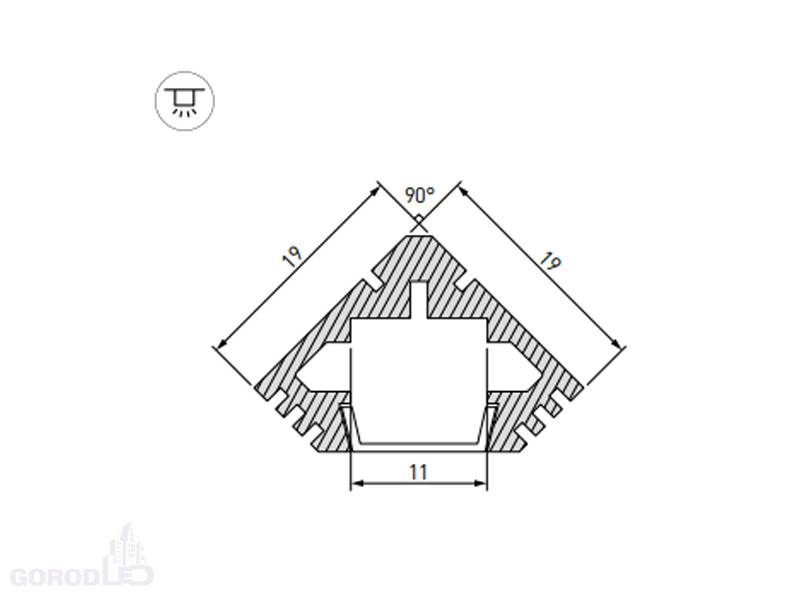 Габаритные размеры (L×W×H): 3000 x 19 x 19 мм. Ширина площадки для ленты 11,2 мм.