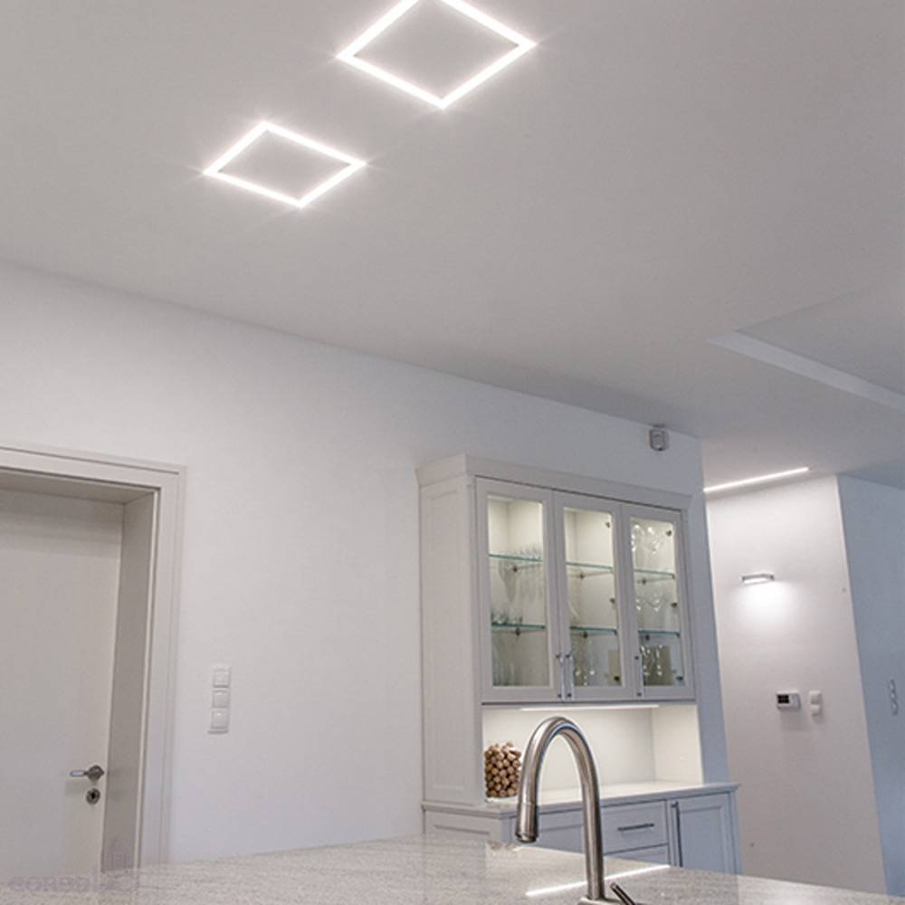 Создание световых полос без видимых алюминиевых частей в гипсокартонных системах.