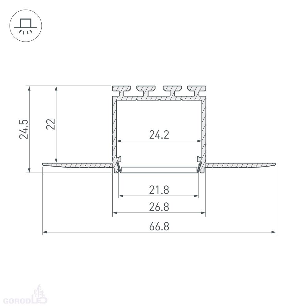 Габаритные размеры (L×W×H): 2000 x 66,8 x 24,5 мм. Ширина площадки для ленты 24,2 мм.