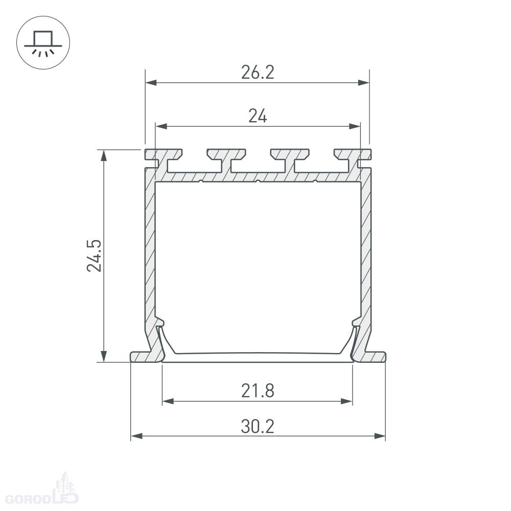 Габаритные размеры (L×W×H): 2000 x 30,2 x 24,5 мм. Ширина площадки для ленты 22 мм. Экраны, заглушки и другие аксессуары приобретаются отдельно.