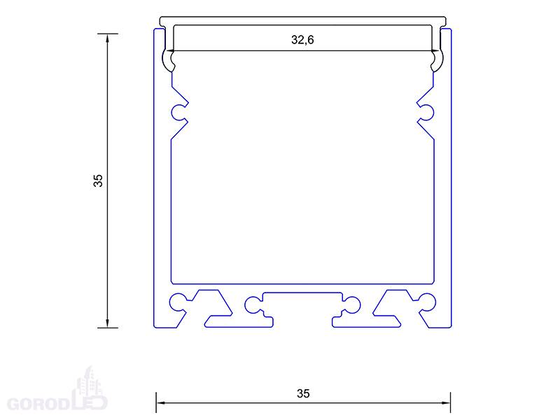 Алюминиевый профиль, высококачественное анодированное покрытие. Для светодиодных лент и линеек. Отдельно поставляются экраны (рассеиватели), заглушки, крепления. Размер 2000х35x35 мм.