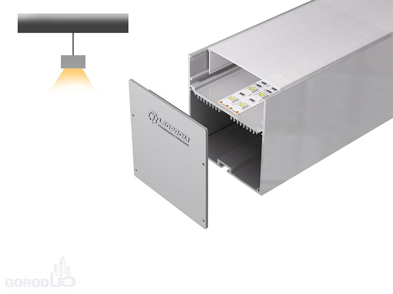 Алюминиевый профиль, высококачественное анодированное покрытие. Для светодиодных лент и линеек. Отдельно поставляются экраны (рассеиватели), заглушки, крепления. Размер 2000х74x77 мм.