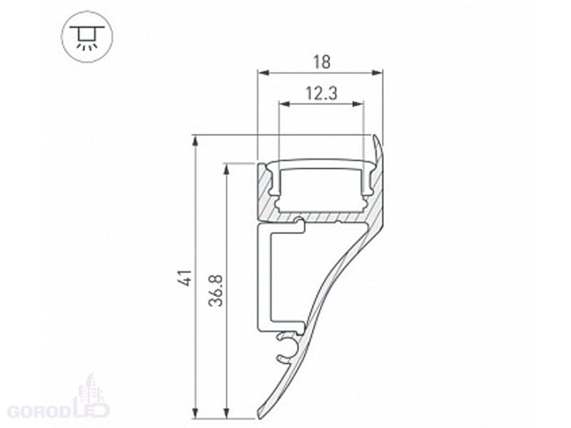 Габаритные размеры (L×W×H): 2000 x 41 x 18 мм. Ширина площадки для ленты 12 мм.