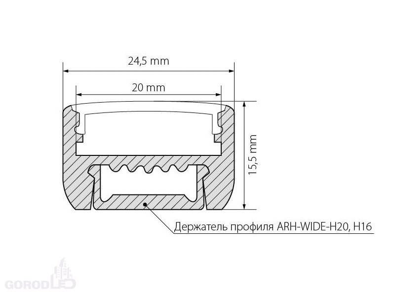 Габаритные размеры (L×W×H): 2000 x 24,5 x 15,5 мм. Ширина площадки для ленты 20 мм.