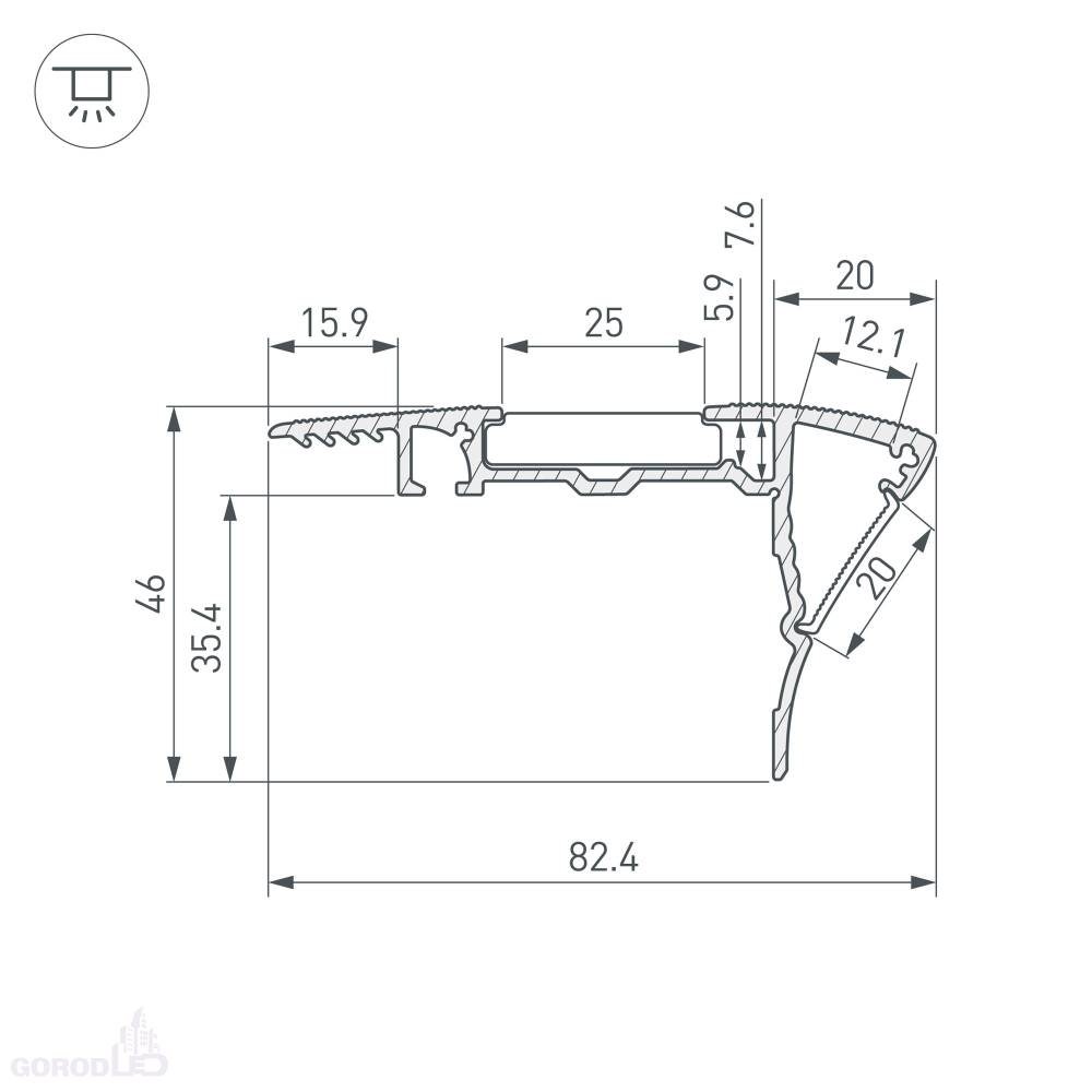 Габаритные размеры (L×W×H): 2000 x 82,4 x 46 мм. Ширина площадок для ленты 7,6 и 12,1 мм.
