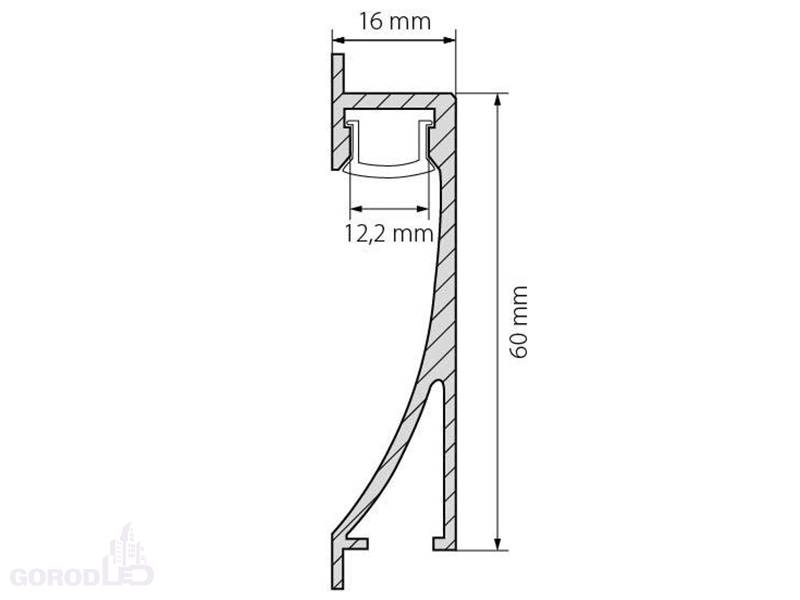 Габаритные размеры (L?W?H): 2000 x 16 x 60 мм. Ширина площадки для ленты 12 мм.