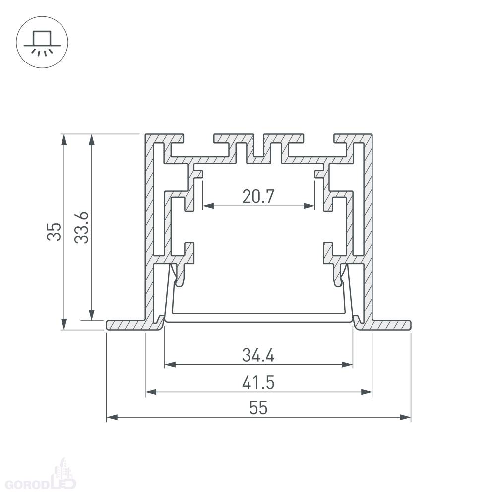 В комплекте профиль, PC матовый экран. Ширина площадки для ленты 20,7 мм.