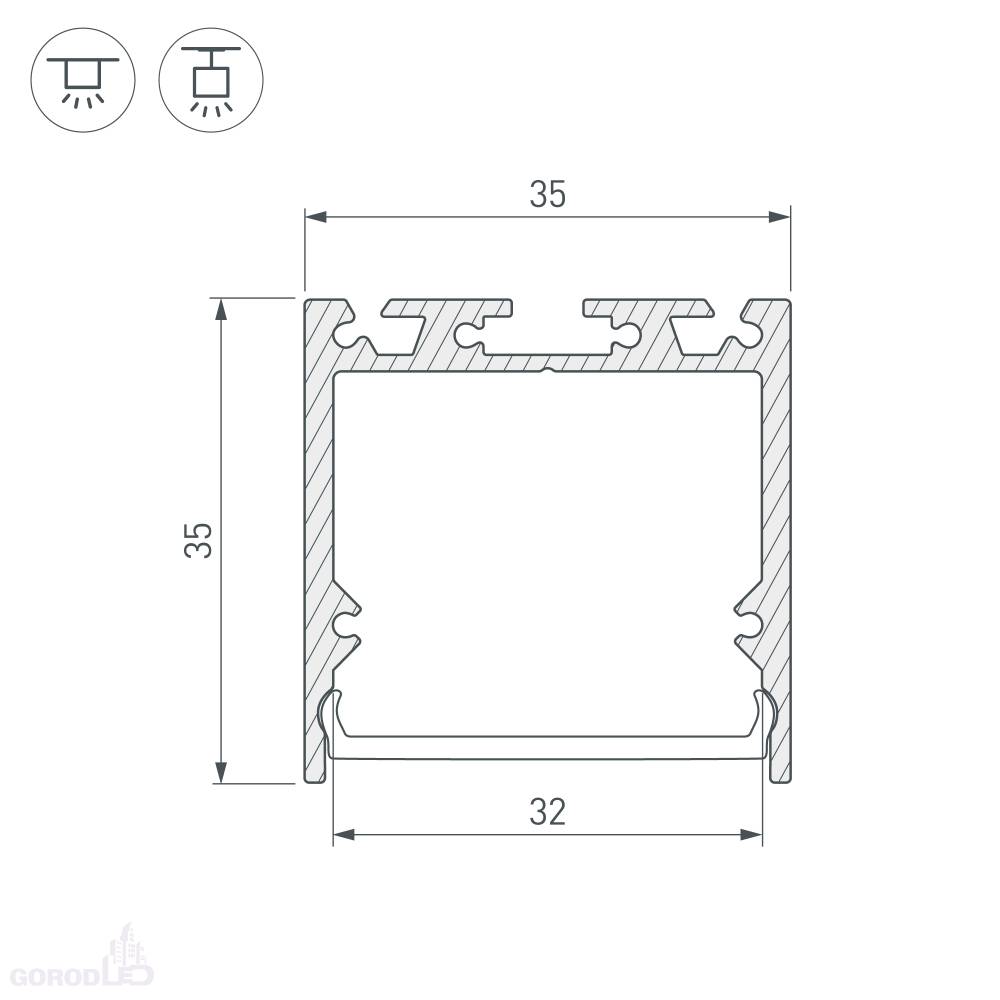 Габаритные размеры (L×W×H): 2500 x 35 x 35 мм. Ширина площадки для ленты 31 мм.
