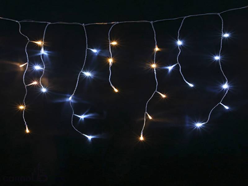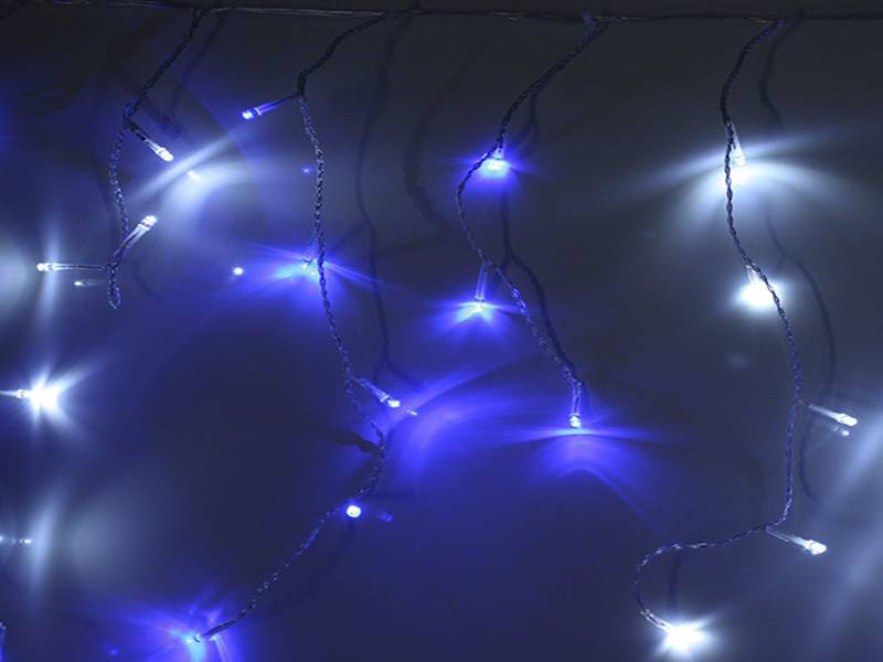 Светодиодная бахрома 3х0,5 представляет из себя 3-х метровый шлейф на котором располагаются нити разной длины до 0,5 метров, общее количество 144 светодиодов (led).