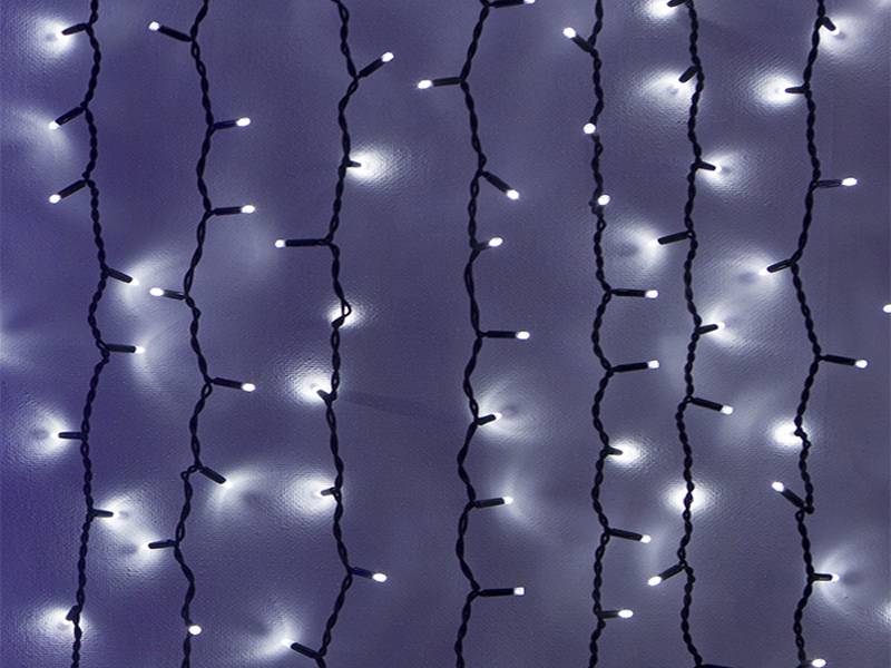 Особенности - возможность последовательного соединения. Гирлянда рассчитана на использование как внутри, так и снаружи помещений, при отрицательных температурах до -50o C. Степень защиты IP54. Занавес является готовым изделием и не требует дополнительных комплектующих.. Идеально подходит для суровых климатических условий с высокой влажностью и перепадами температур.