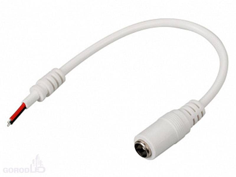 Для подключения одноцветной светодиодной ленты к адаптеру питания с коаксиальным коннектором 5,5х2,1 мм, длина кабеля 10 см.