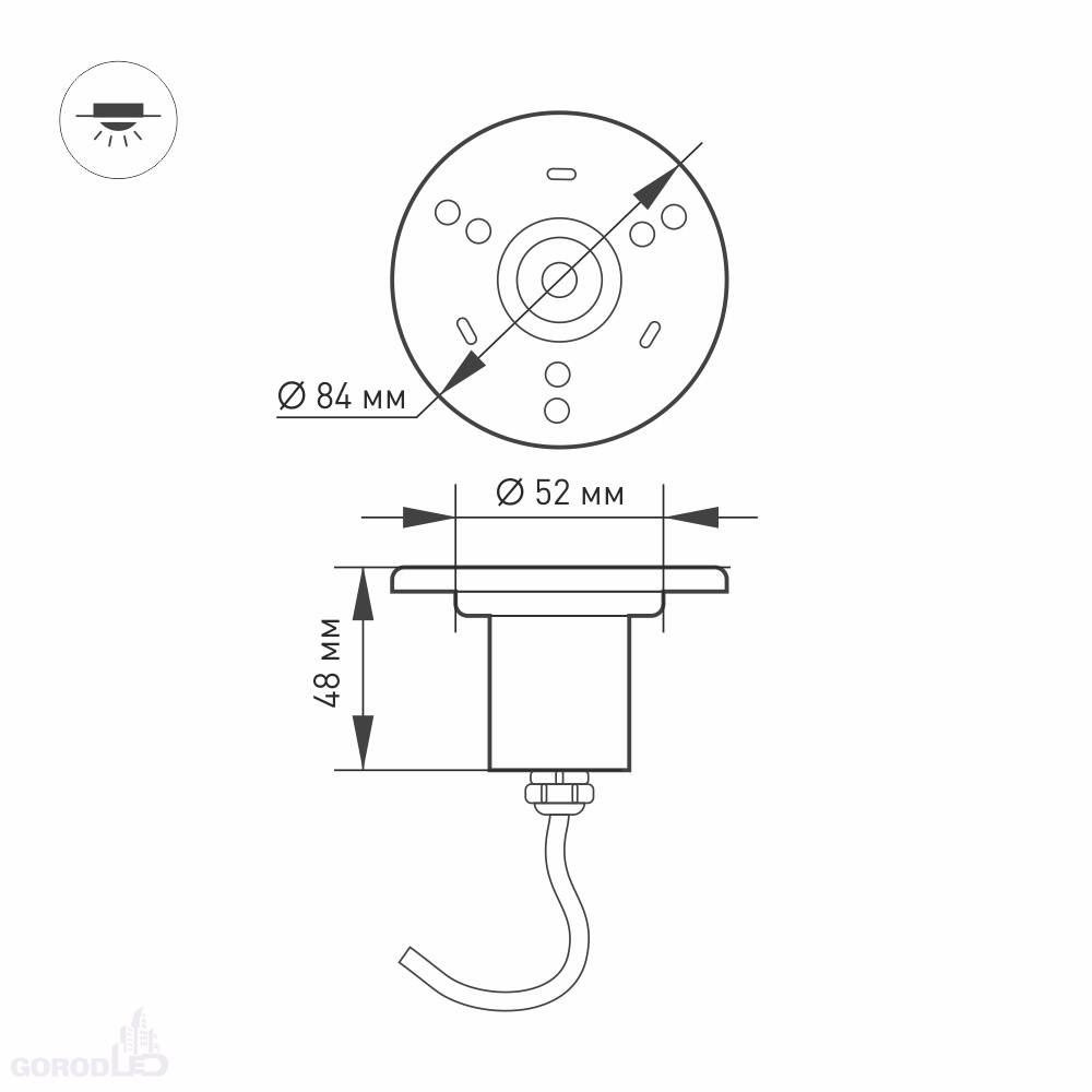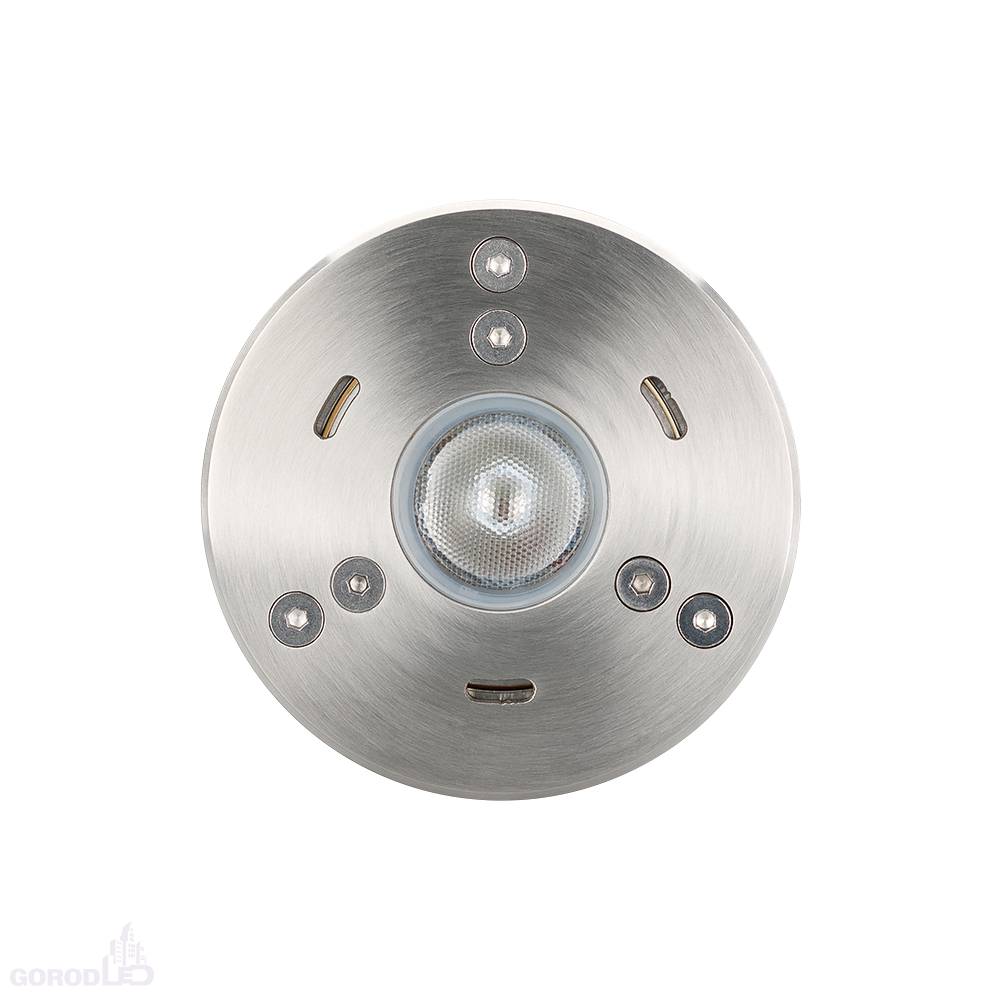 Подводный светодиодный светильник, мощность 9Вт, угол освещения 25°, световой поток: RGB - 540лм. Влагозащищенный корпус IP68 - серебристая нержавеющая сталь, экран закаленное стекло. Мощность 9Вт. Размеры DxH Ø84х98мм. Установка в отверстие DxH Ø74х106мм В комплекте 5м провод.