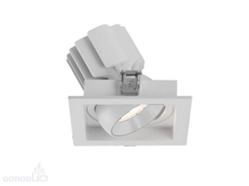Встраиваемый карданный поворотный светильник с высоким индексом цветопередачи CRI>92 предназначен для создания качественного освещения. За основу поворотного механизма светильника взят принцип кардана – подвижное соединение двух колец, вложенных одно в другое. Световой модуль вращается вокруг своей оси на 360 градусов и отклоняется от горизонта на 30 градусов, что позволяет с лёгкостью регулировать направление пучка света и его концентрацию на определенной зоне. Особая конфигурация корпуса из алюминия оригинально смотрится в интерьере и позволяет эффективно отводить тепло. Светильник с углом рассеивания 20 градусов отлично подходит как для локальной акцентной подсветки витрин, прилавков магазинов, бутиков и стендов выставочных залов, так и для общего освещения. Легко устанавливается с помощью пружин в монтажное отверстие потолка. В комплекте поставляется драйвер, что позволяет безопасно и быстро подключать светильник напрямую к сети переменного тока 230 В.