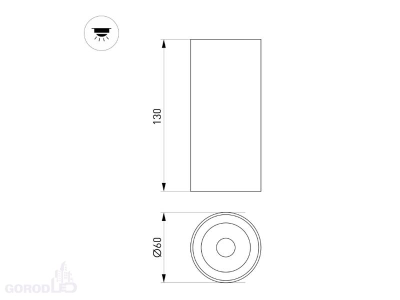 Накладной светильник. Мощность 12 Вт, св. поток 1200 лм, 100 лм/Вт, дневной 4000 K, теплый 3000 К, CRI>90, угол 36°, напряжение питания 230 В. Белый или черный круглый корпус из алюминия, экран PMMA, степень защиты IP40. Размер: диаметр 60 мм, высота 130 мм. Монтаж накладной. Встроенный драйвер 27-42 В, 300 мA, пульсация <1%.