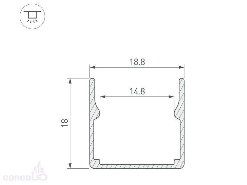 Профиль из анодированного алюминия для силиконового профиля WPH-FLEX-1616. Габаритные размеры (L×W×H): 1000х18,8х18 мм. Цена за 1 метр.