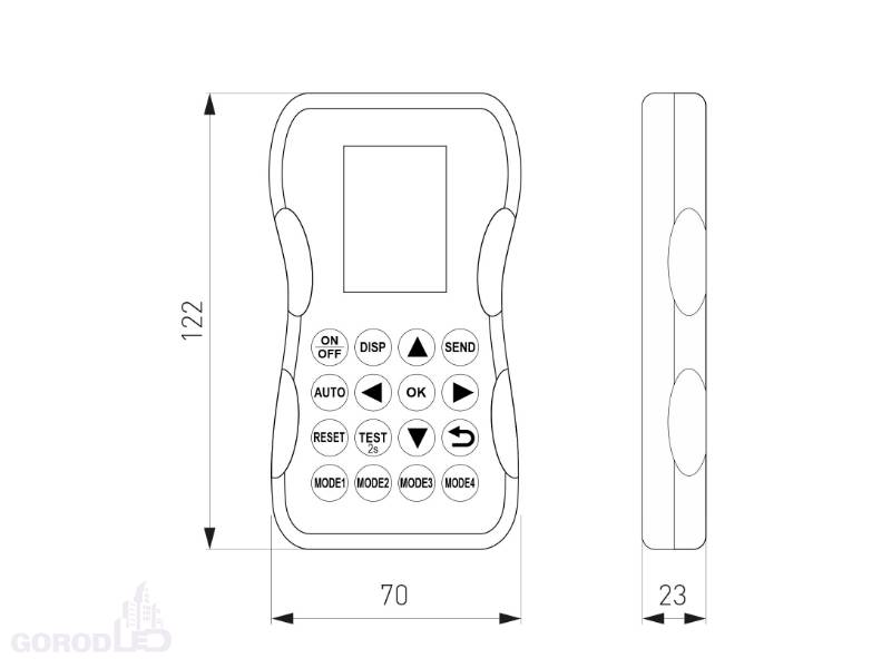 Кнопочный пульт-контроллер ARL-LAGERN-IR (3V) для управления датчиком движения. Питание 3VDC (2xAAA). Габариты 120х70х23 мм.