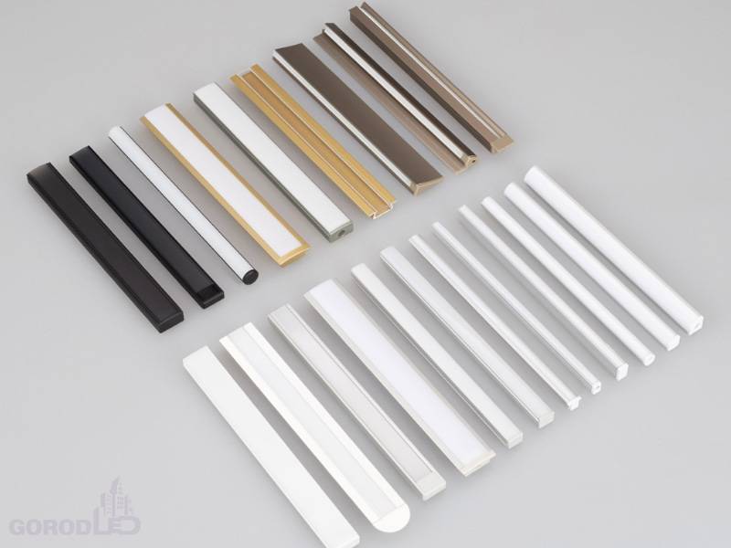 Набор образцов мебельных профилей ARLIGHT с экранами и заглушками. Длина отрезков 150 мм.