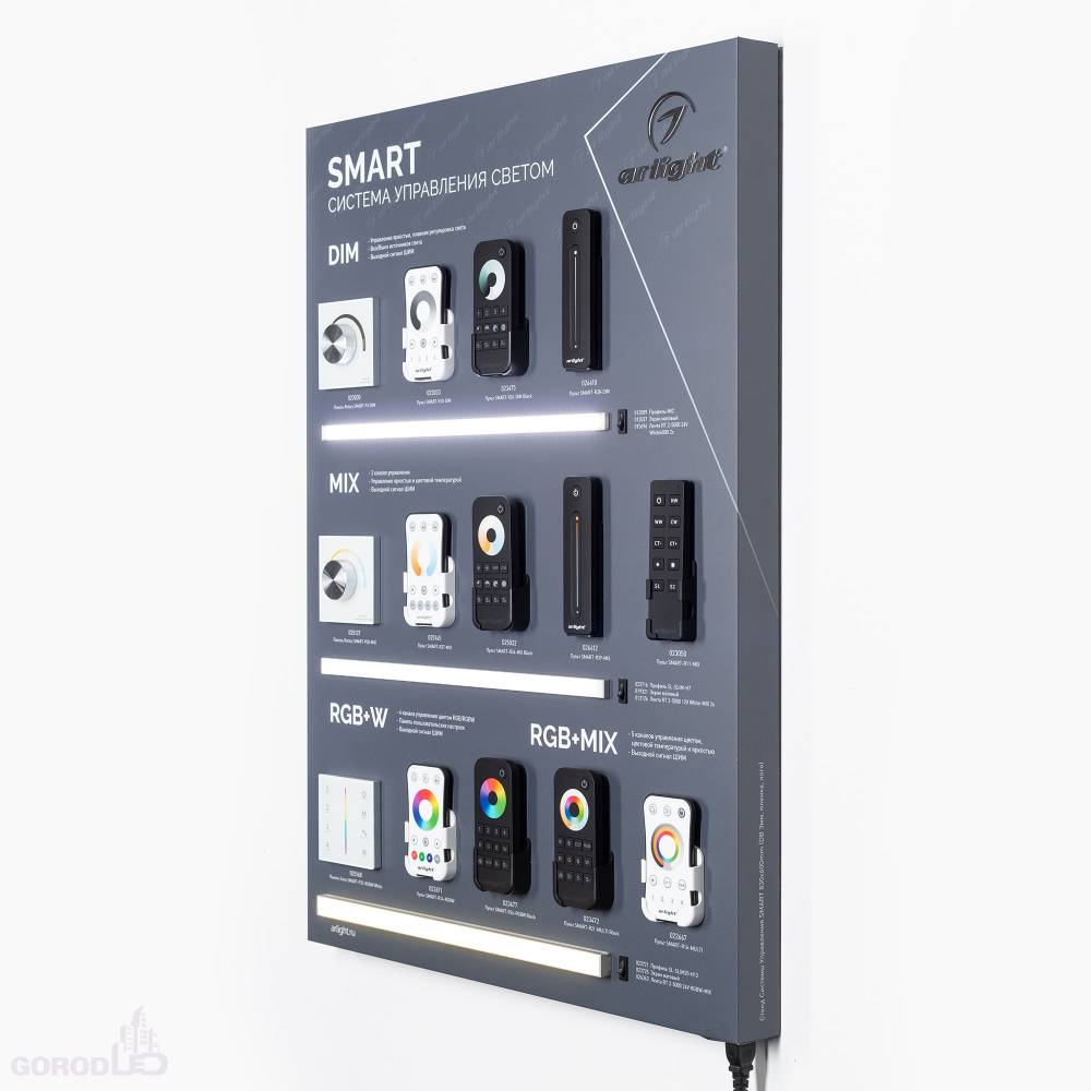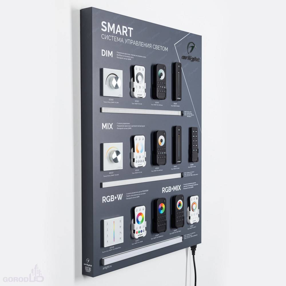 Стенд системы управления светом SMART. Габаритные размеры (Ширина Х Высотах Х Глубина), мм 600х830х50 мм.