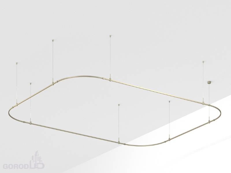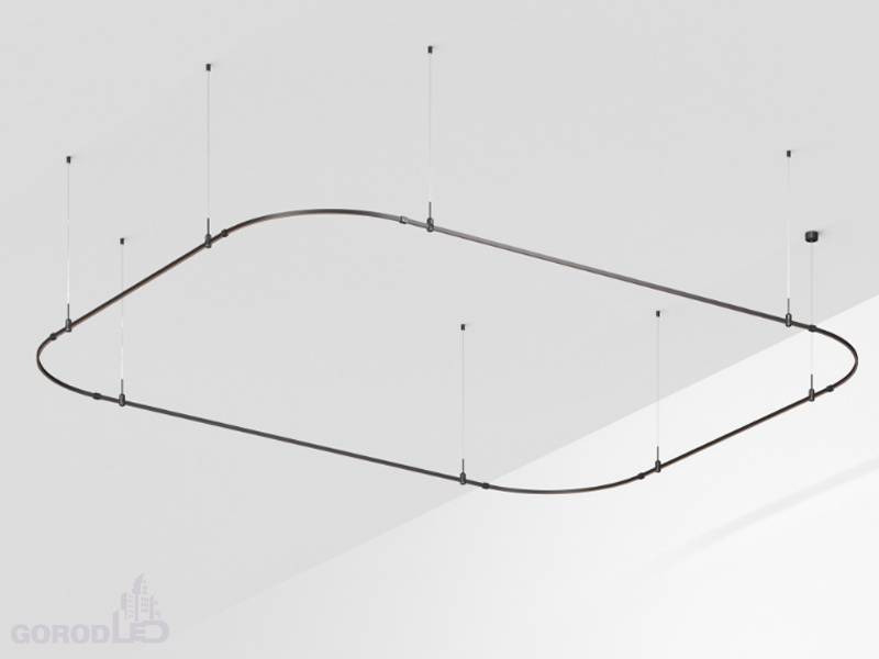 Подвесная конструкция APRIORI, форма закругленный прямоугольник. В комплекте треки с аксессуарами и гибкими подвесами. DC48V. Материал алюминий, цвет черный, серый оливковый, титан, золото светлое. Размер ДxШxВ: 4500x3500x22мм. Светильники и источники питания приобретаются отдельно.