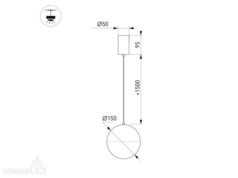 Размер: диаметр 150 мм, длина подвеса 1500 мм. Габариты чаши: Ø50 x 95 мм.