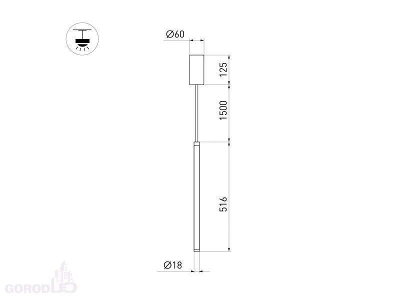 Подвесной светильник. Мощность 6 Вт, св. поток 240 лм, 40 лм/Вт, теплый 3000 K, дневной белый 4000 К, CRI>85, угол 360°, напряжение питания 230 В. Черный или белый круглый корпус из алюминия, рассеиватель акрил, степень защиты IP20. Размер: диаметр 18 мм, длина 516 мм, размер чаши: диаметр 60 мм, высота 125 мм. Монтаж подвесной, длина подвеса 1500 мм. Драйвер DC 24 В, 250 мА.