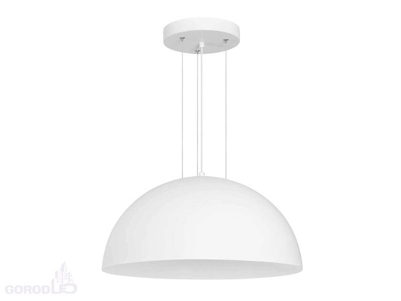 Подвесной светильник. Мощность 30 Вт, св. поток 1900 лм, 55 лм/Вт, теплый 3000 K, дневной белый 4000 К, CRI>90, угол 100°, напряжение питания 230 В. Черный или белый круглый корпус из алюминия, степень защиты IP20. Размер: диаметр 500 мм, высота 250 мм, размер чаши: диаметр 200 мм, высота 35 мм. Монтаж подвесной, длина подвеса 1500 мм. Драйвер 24-42 В, 900 мА, пульсация <5%.
