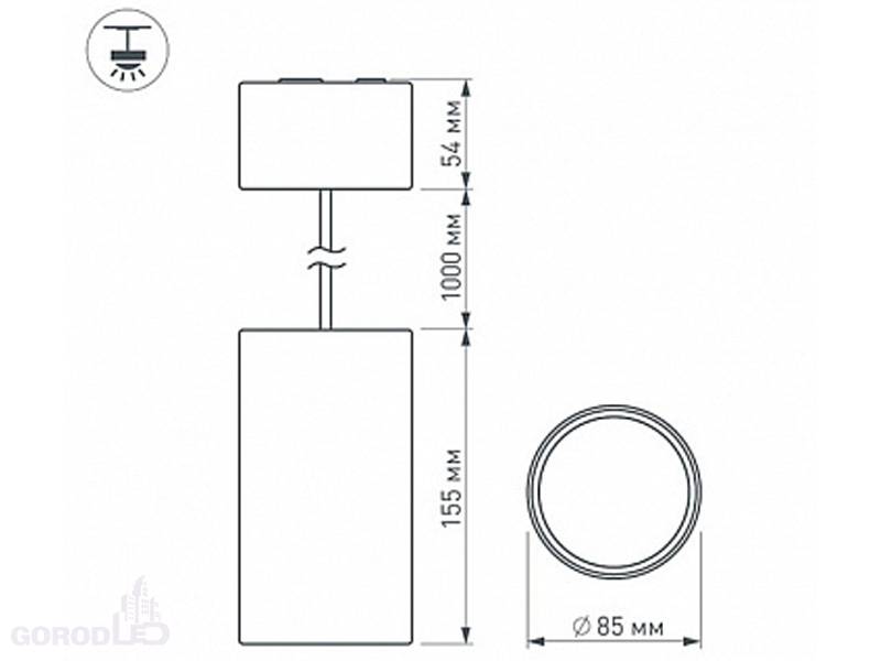 Размер Ø85 x 155 мм. Встроенный драйвер PRI:220-240VAC, SEC:DC 500 mA 23-36V 15 Вт.