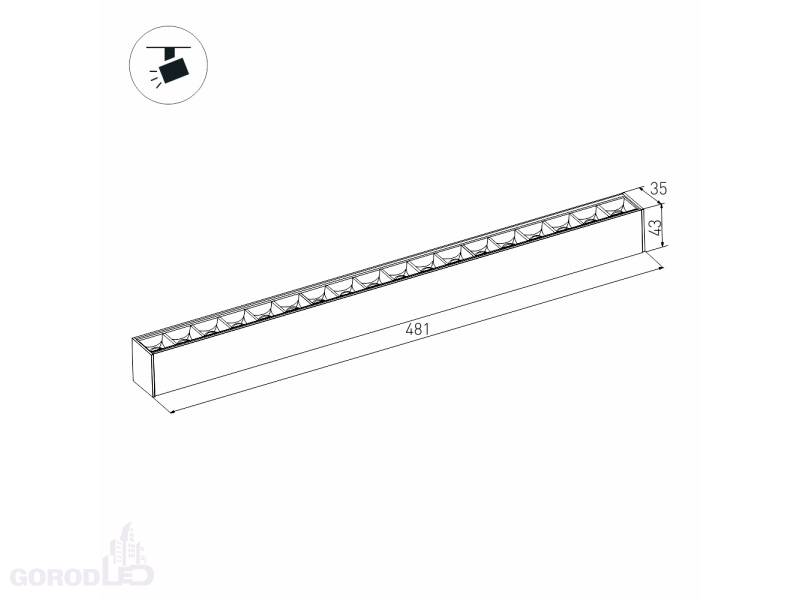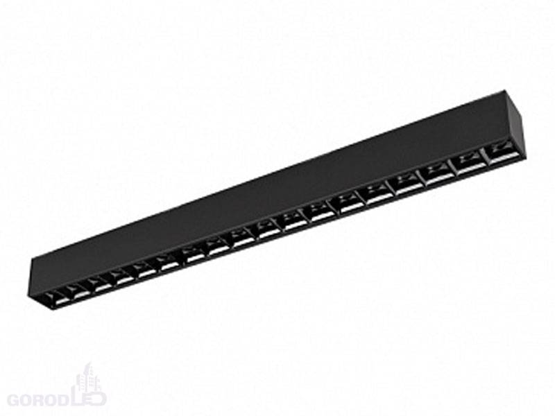Светильник для магнитных треков шириной 45мм, 27Вт. Цвет свечения Дневной белый 4000K - световой поток 1700лм, Теплый белый 3000К - световой поток 1680лм, угол 36°, CRI>90. Корпус прямоугольный, металл, цвет черный, IP20. Размеры LxWxH 481x35x43мм. Входное напряжение DC24V, мощность 27Вт. Драйвер DС24V/AC230V поставляется отдельно. Диммируется только с 026407, 027633.